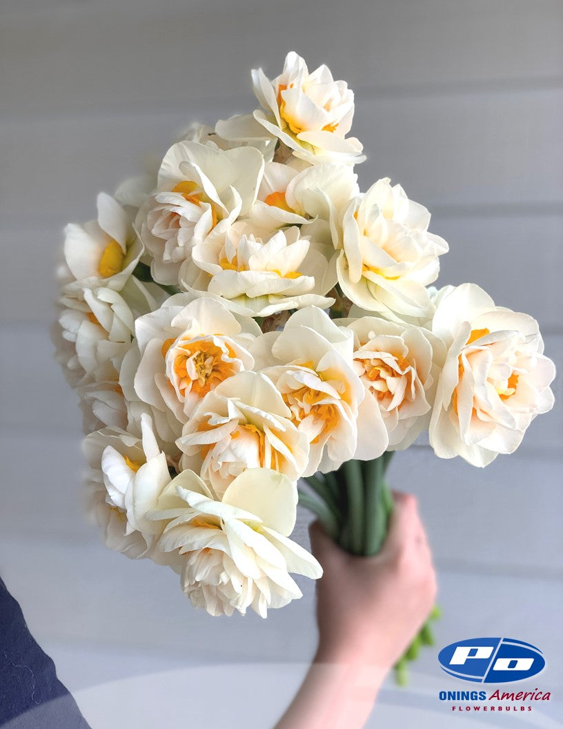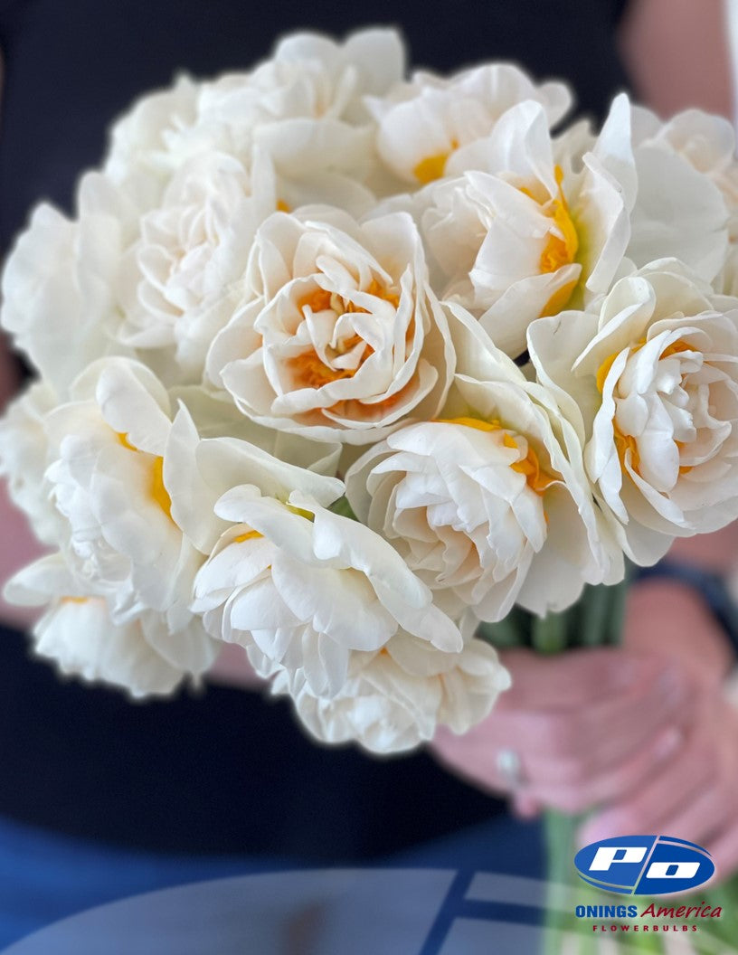 One of our favorites and exclusively available in the US via Onings America. Yosemite Valley is a gorgeous, (very) late, (very) tall flowering fancy daffodil with (very) large flowers. Absolute stunner!